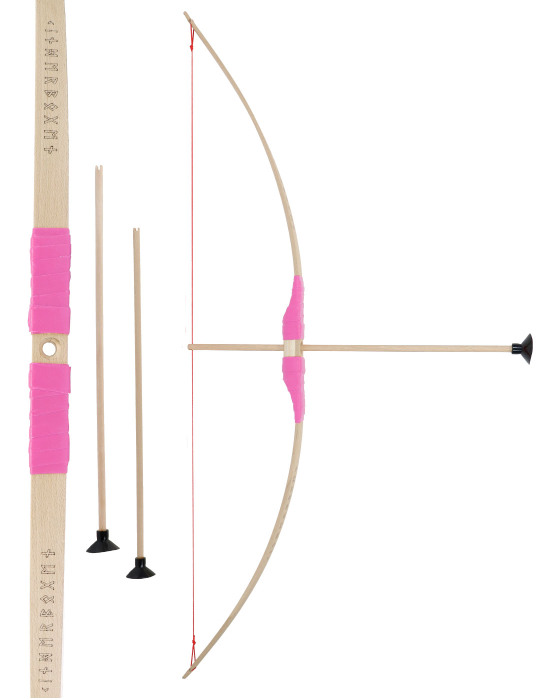 • Barnbåge i bokträ med pink grepp + 3 pil..
