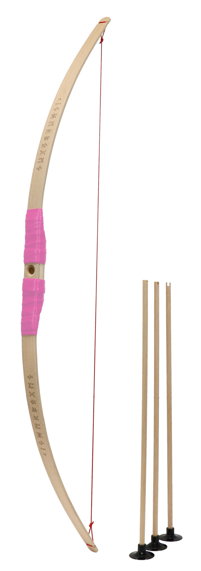 Typ:Barnbåge i bokträ med pink grepp + 3 pilar