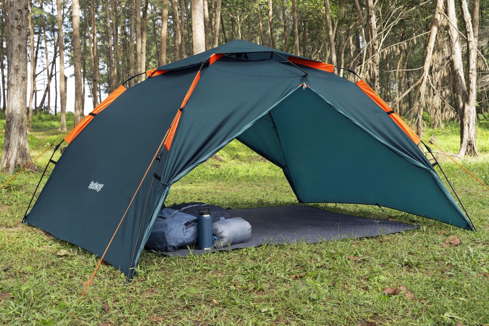 Den ventilerande meshväven är utrustad med ett insektsnät som håller insekterna borta samtidigt som sval, frisk luft kan blåsa igenom. Förutom meshväven är konstruktionen med dubbla lager vattenavvisande för att förhindra att fukt byggs upp, och de 2 ingångarna (med 2 verandor) ger gott om ventilation både dag och natt. Det finns också 4 innerfickor för extra förvaring och ett avtagbart yttertält som kan användas som soltak. Bestway Alpine Dome levereras med en egen förvaringsväska, vilket gör det till den perfekta lösningen för alla som är på språng.