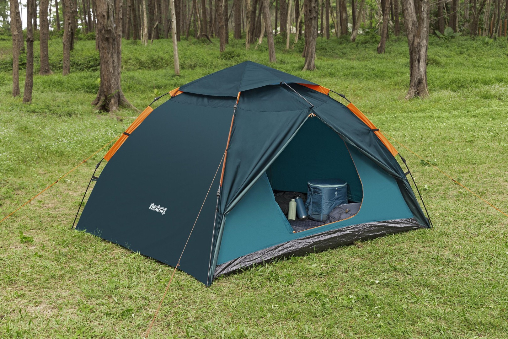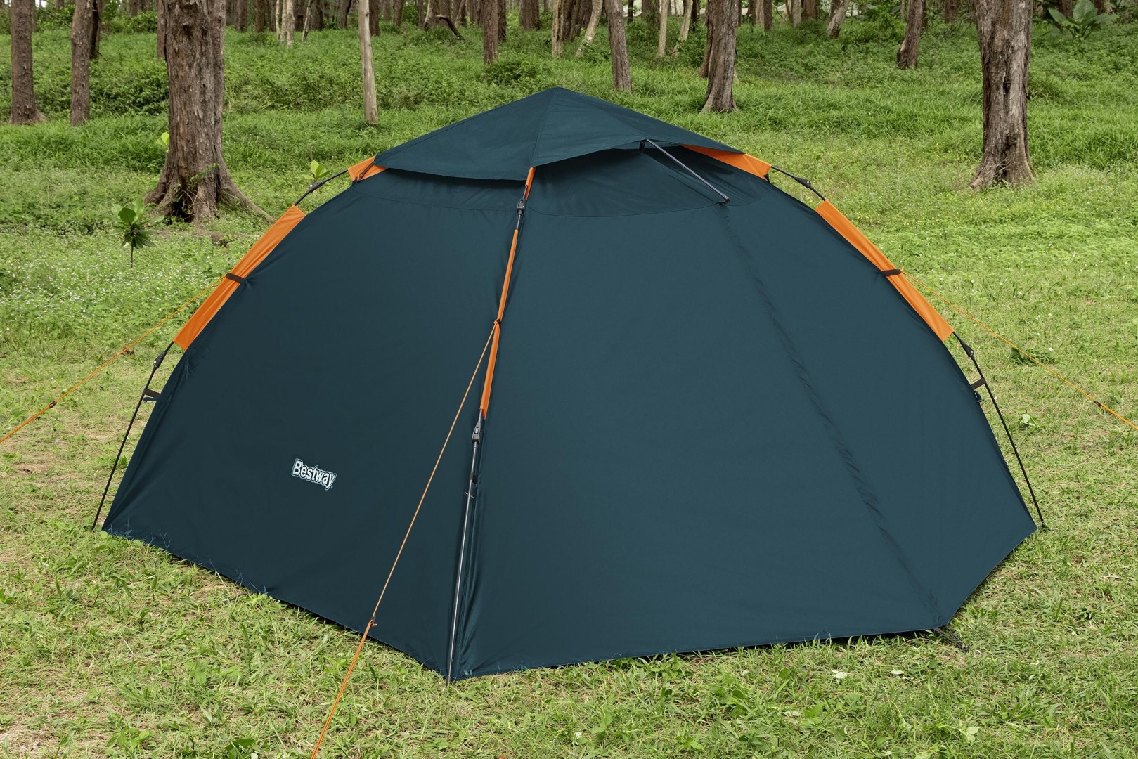 Bestway® Alpine Dome™-tältet är perfekt för att njuta av naturen både dag och natt. Med SwiftClick™-systemet tar det bara 5 minuter att sätta upp tältet, så att du och 3 andra kan ägna mindre tid åt att sätta upp det och mer tid åt att koppla av i ett skuggigt, svalt tält på stranden eller utomhus.
