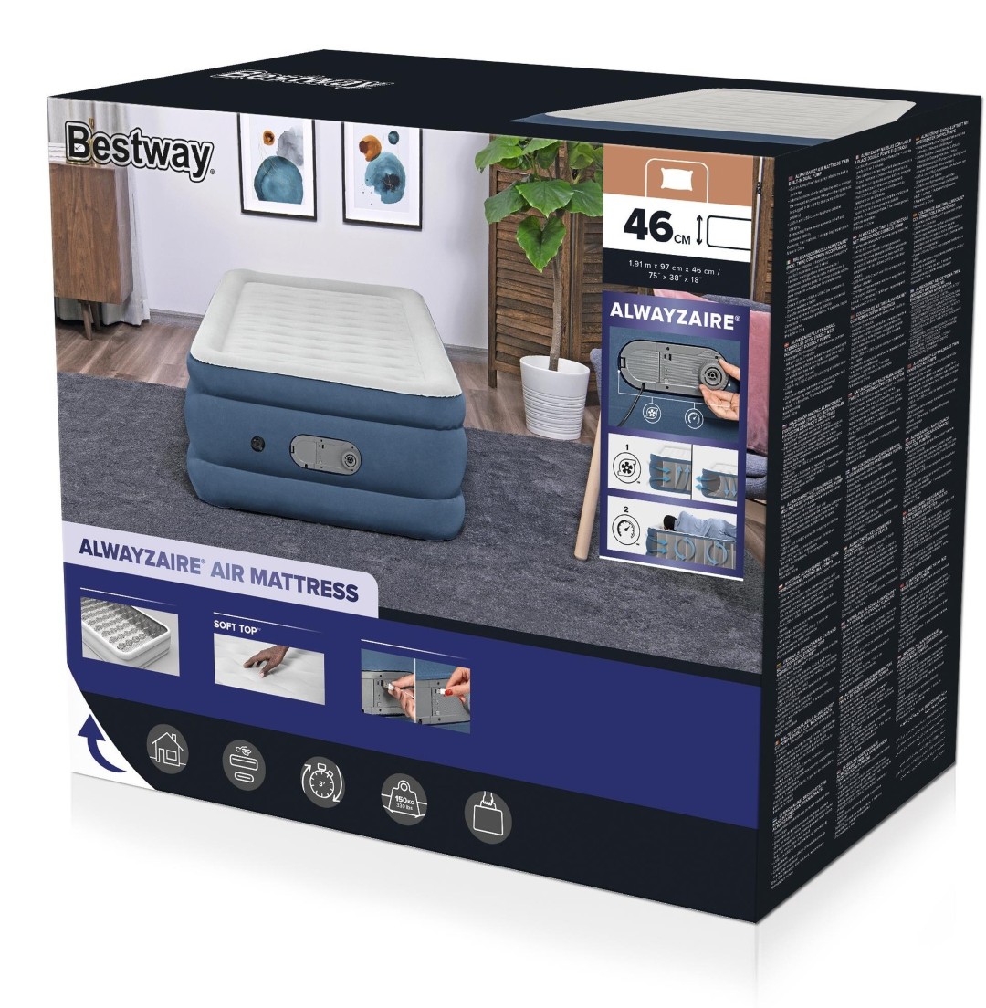 - Inbyggd 220- 240V~ AC-AlwayzAire™ dubbelpump blåser upp sängen på 3 minuter