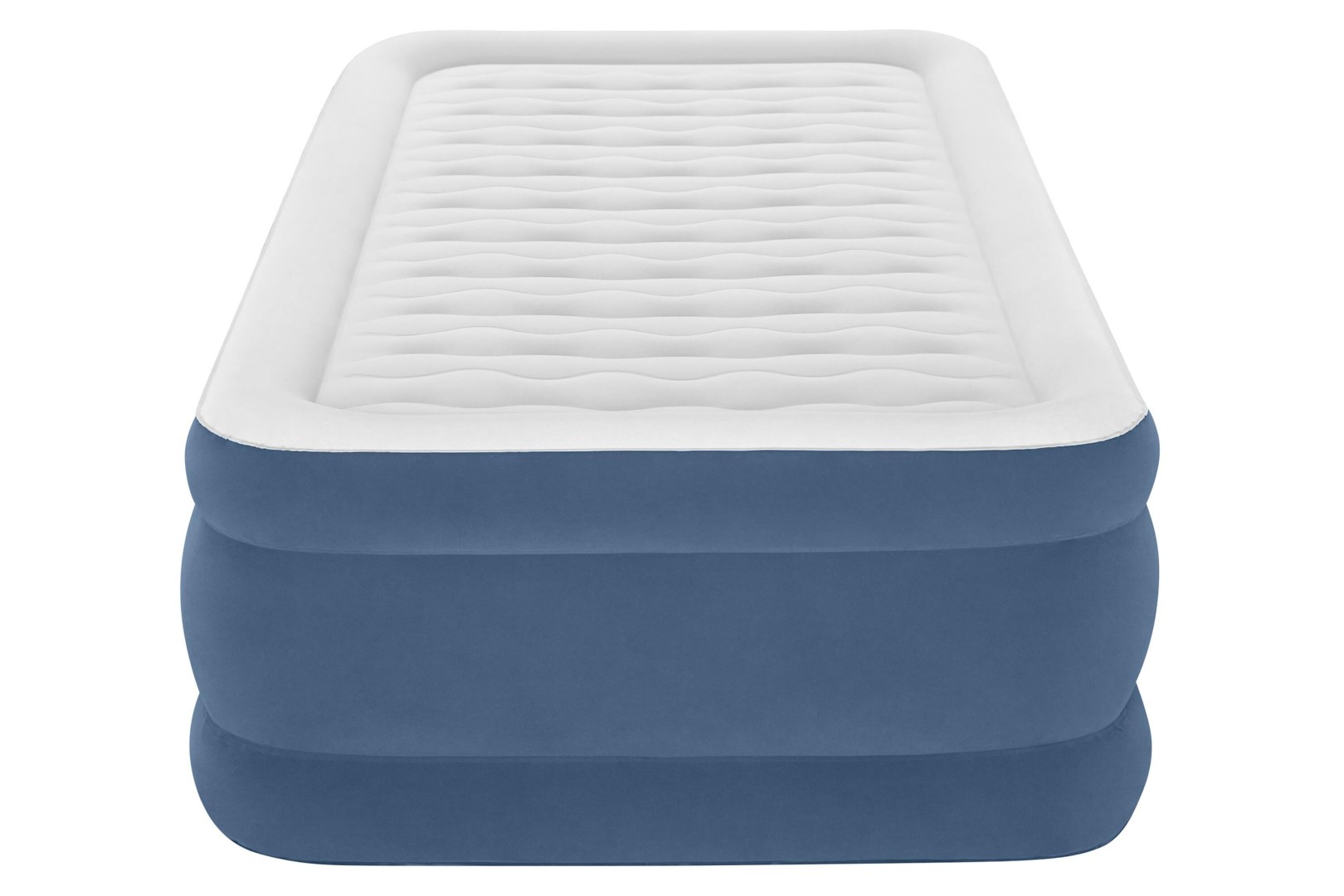 Den här luftmadrassen har en mjuk, sammetslen sovyta som är lika bekväm som den är hållbar. Koppla av i komfort på de lyxiga vågfälten som hjälper till att hålla ryggraden på plats och lindra trycket medan du sover. Den omgivande ramkonstruktionen förhindrar också att madrassen tippar över under natten.