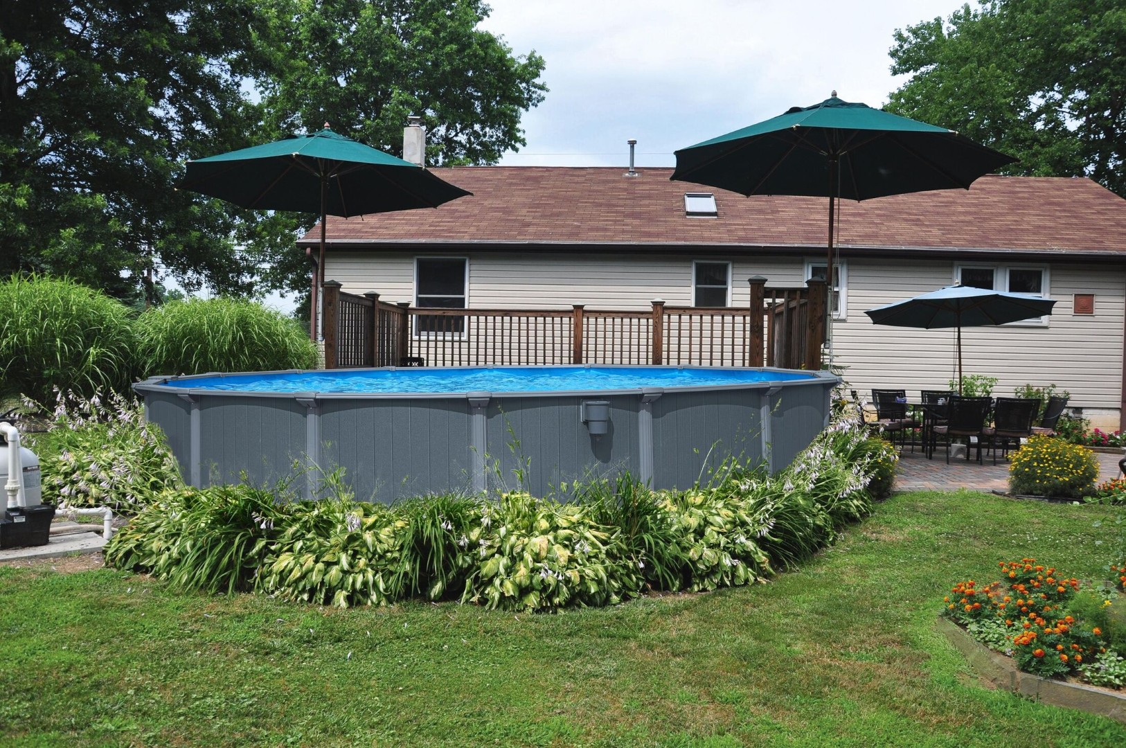 Polar-Shield-förstärkt pool kan stå året runt utan skador, även i kalla temperaturer; Det grå trycket kan integreras i din trädgårdsdesign för ett harmoniskt utseende