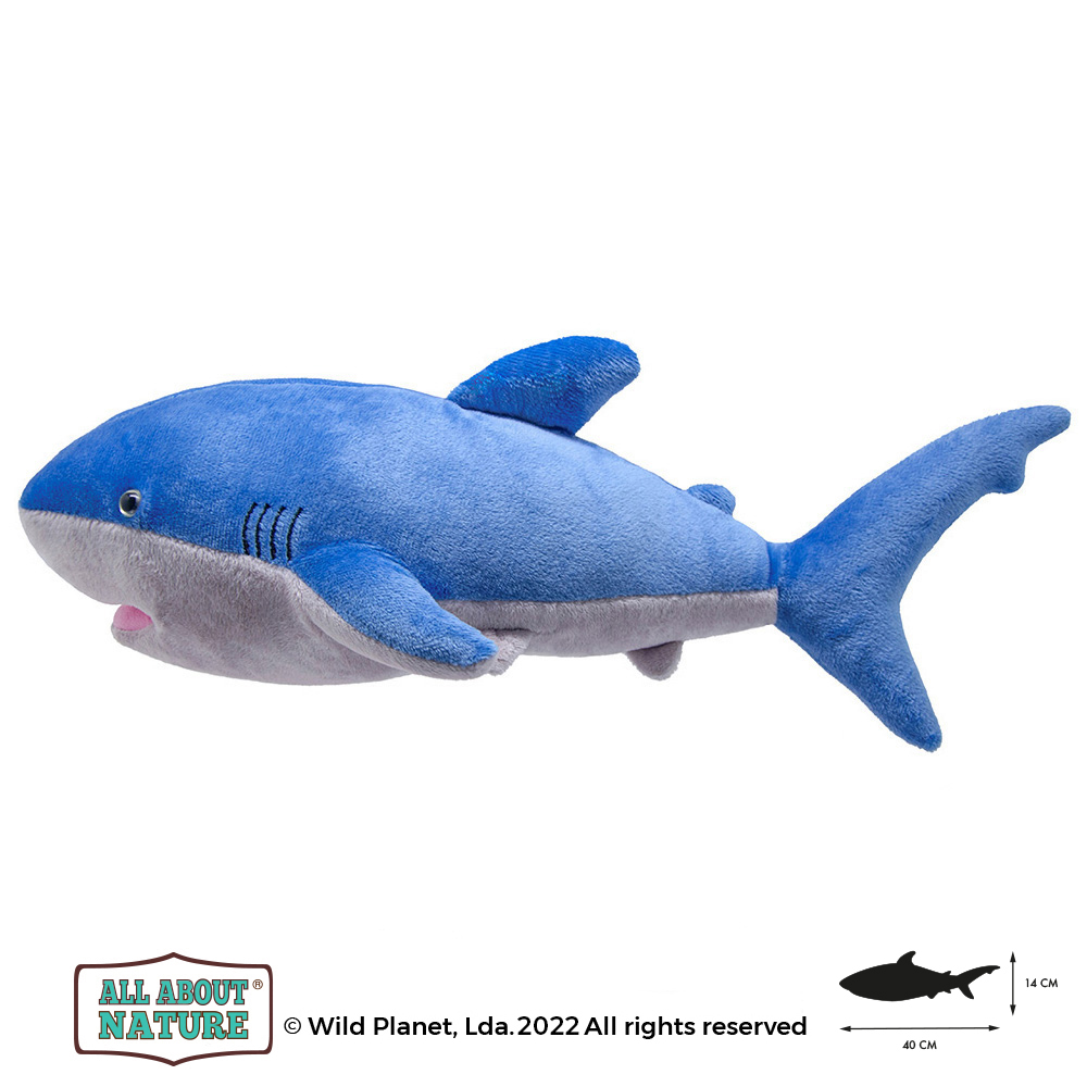 Blå haj plysch Gosedjur 40x14 cm - All About Nature