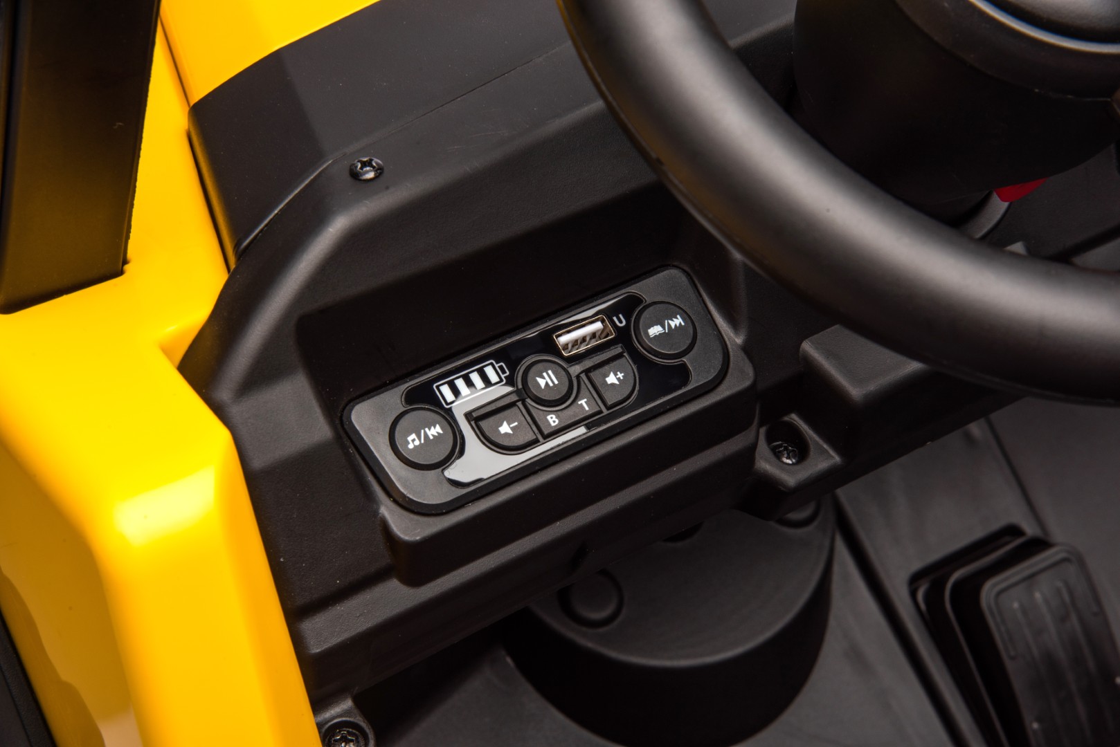 - Funktioner: 2,4G R/C, ström-/fotbrytare, motor- och babyljud, hög/låg hastighet, MP3