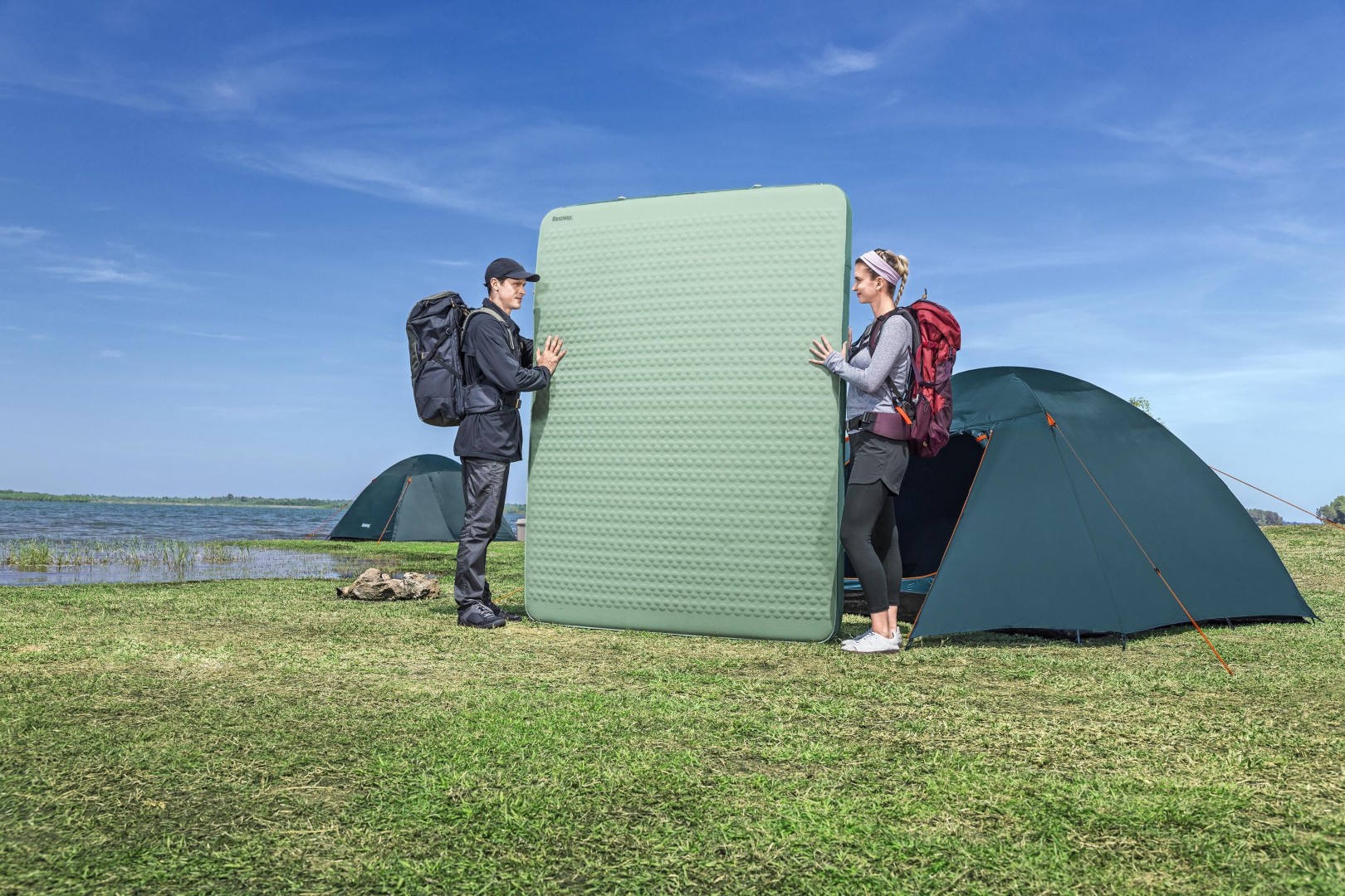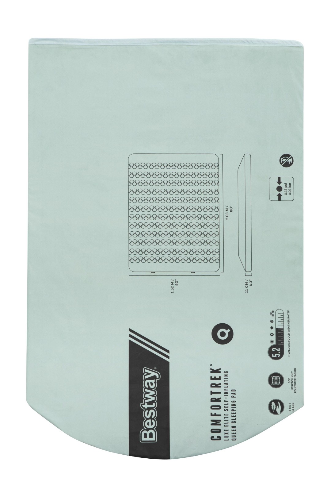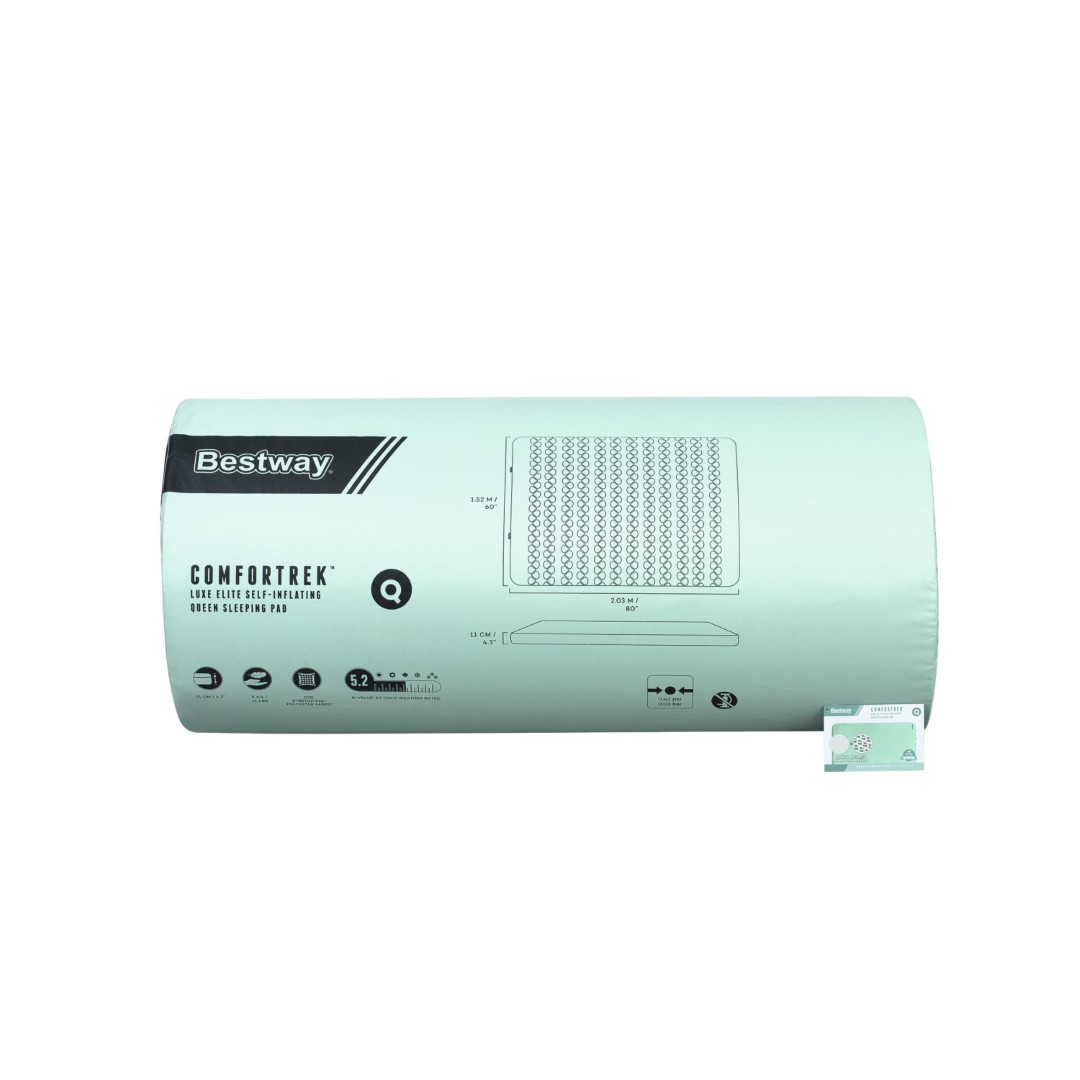 Ge dig själv en bekväm natts sömn, även när du är ute på äventyr i vildmarken, med Bestway® ComforTrek™ Luxe Elite självuppblåsande Queen-sovunderlag. Med sin självuppblåsande design och mjuka skumkärna håller du dig varm på natten samtidigt som du får extra stoppning och stöd med det här underlaget. Med ett R-värde på 5,2 är liggunderlaget perfekt för kallt väder och har en unik NuuFlex™ innerskumdesign som ger en lättare, mer andningsbar och mycket komprimerbar struktur för komfort och kompakthet. Det nya skummet minskar vikten på liggunderlaget och omges av ett patenterat, punkteringsbeständigt och PVC-fritt ToughLite™ TPU-material med en mjuk men flexibel 50D stretchstickad polyesteryta som gör det både bekvämt och varmt, så att du kan få en god natts sömn även när du campar! Den självuppblåsande designen gör installationen enklare. Vrid helt enkelt på de exklusiva SpinSeal 360™-ventilerna så blåses mattan automatiskt upp och expanderar till en tjocklek på 11 cm. Du kan också använda förvaringspåsen som en pumpväska för att blåsa upp liggunderlaget snabbare eller skapa en fastare liggyta. Håll dig varm och bekväm medan du njuter av ditt äventyr med ComforTrek Luxe Elite Self-Inflating Queen Sleeping Pad.
