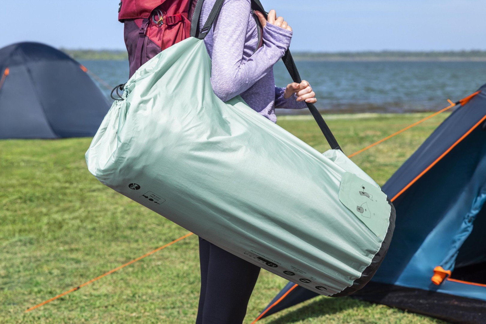 - Innehåll: 1 luftmatta, 1 reparationslapp, 2 kompressionsremmar, 1 förvaringspåse