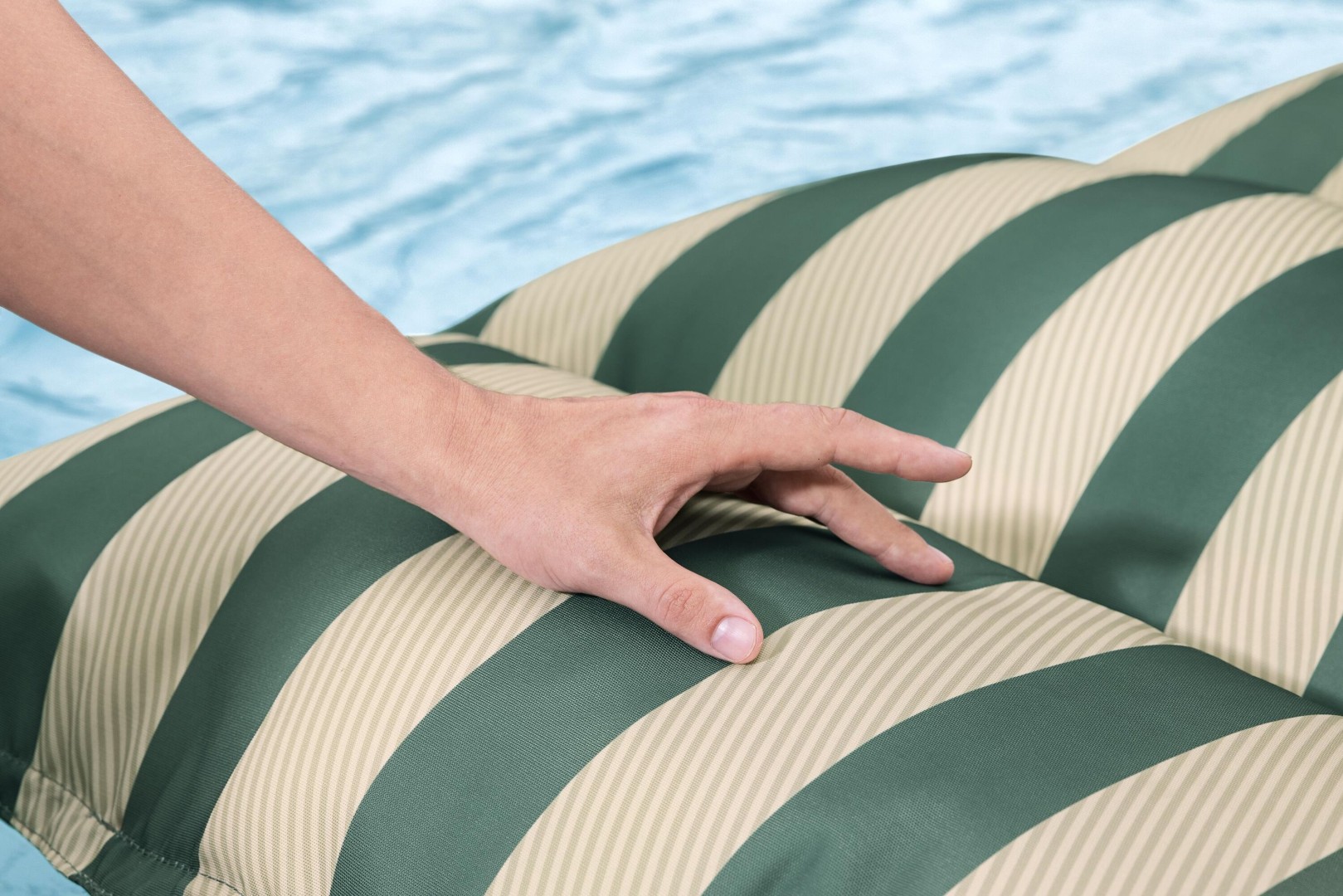Everluxe lyxig poolmadrass i tyg med bärhandtag