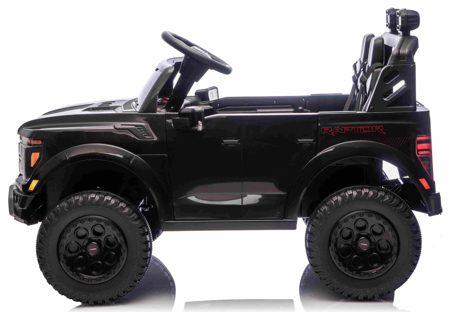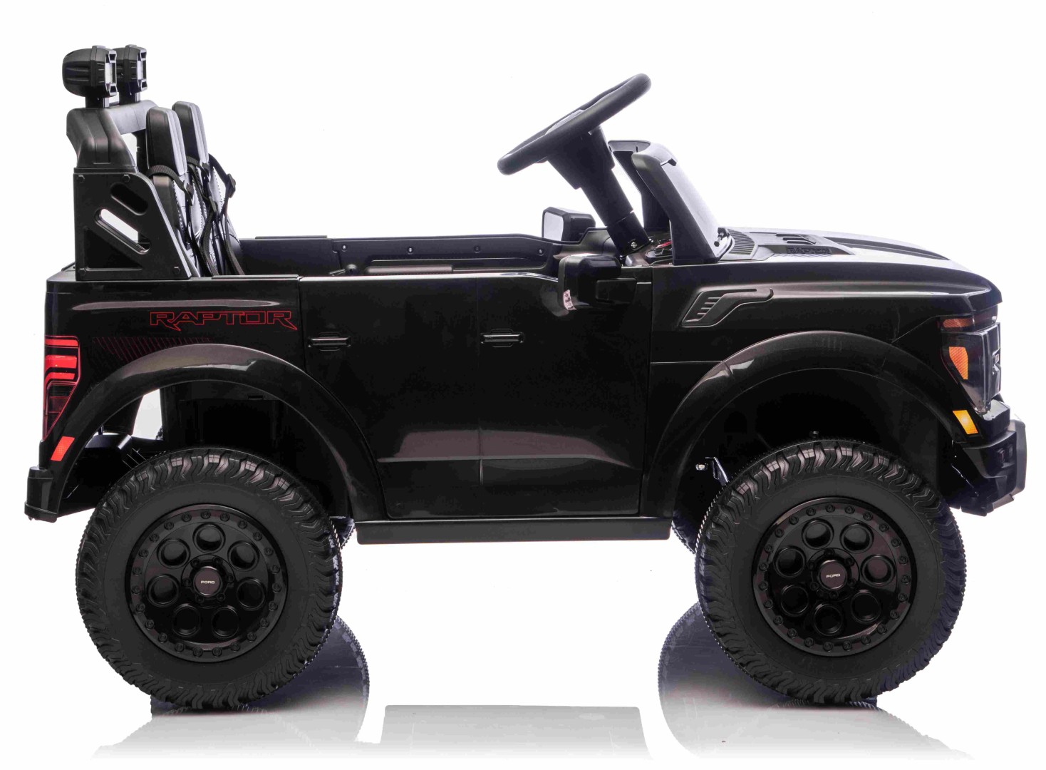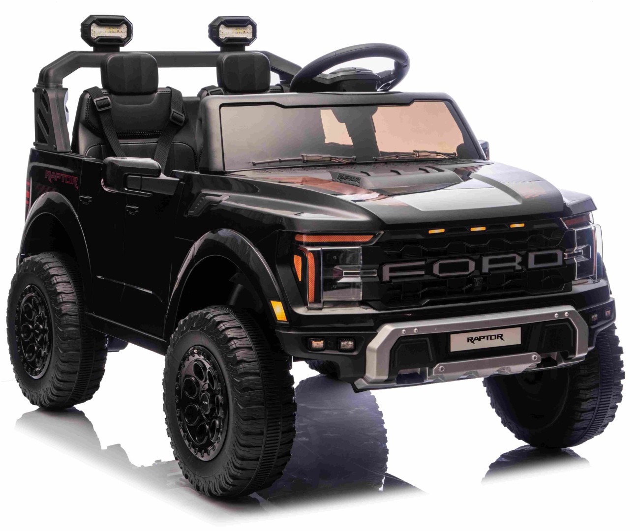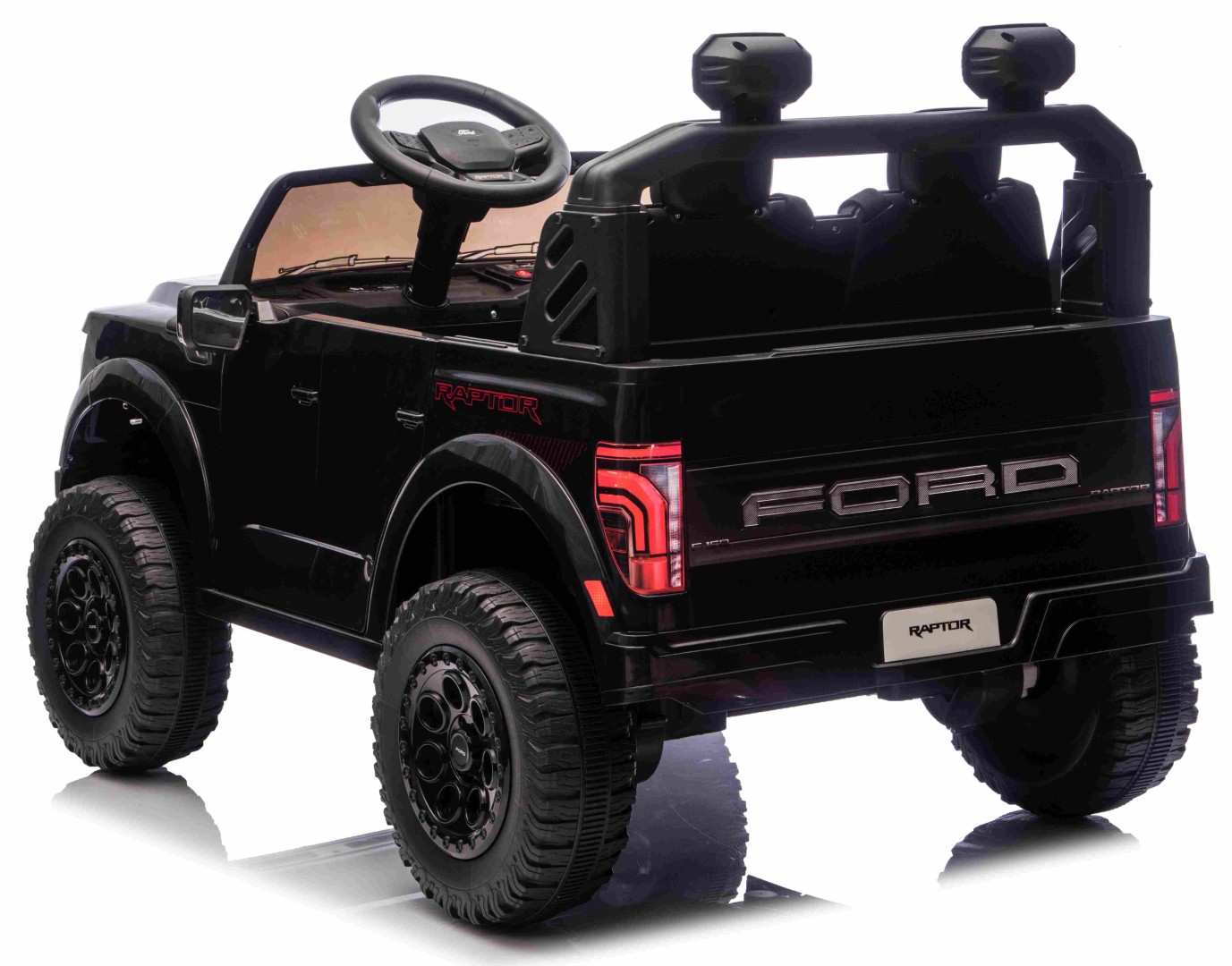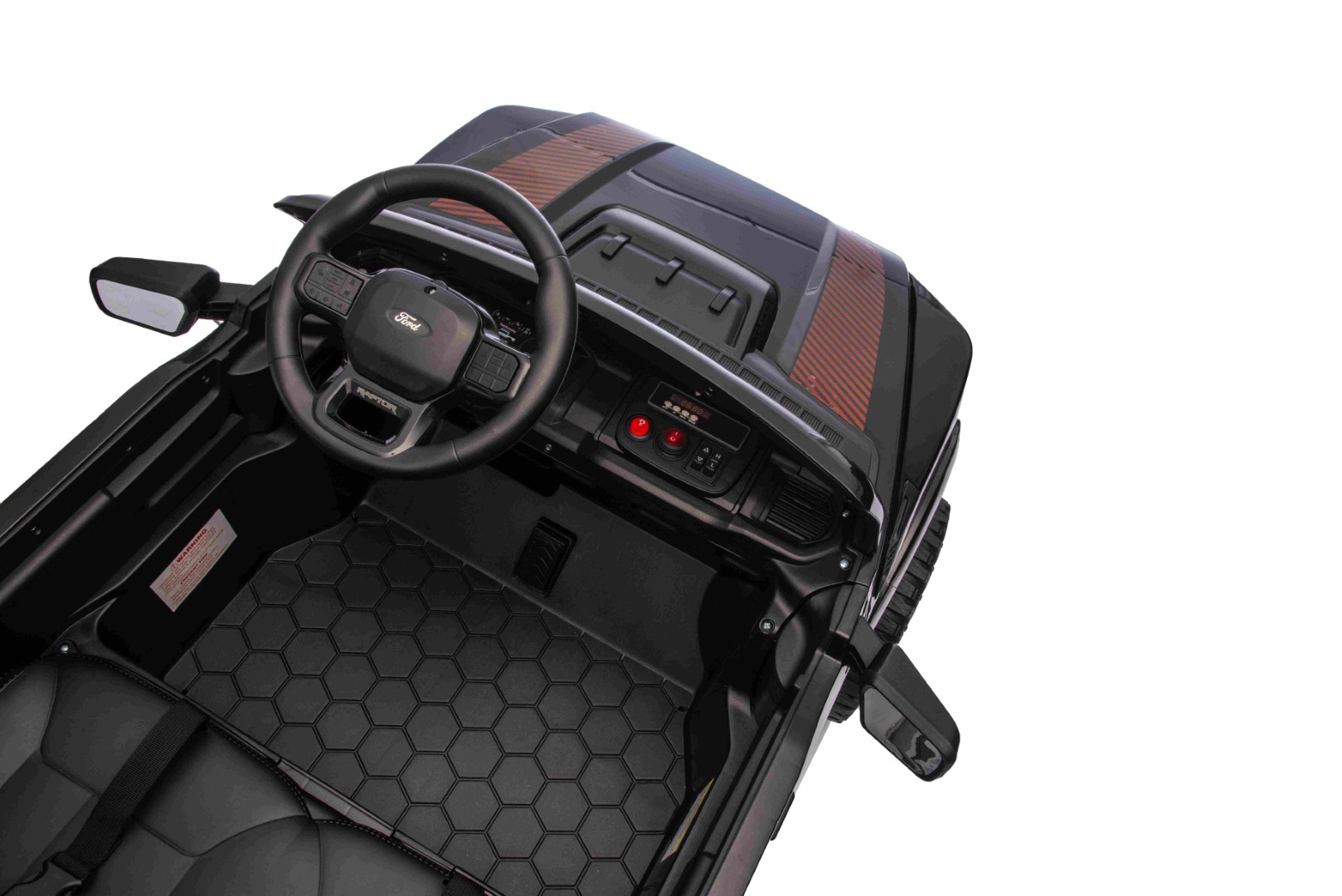 För att göra upplevelsen ännu mer autentisk är elbilen utrustad med LED-lampor som får den att se ut som en riktig Ford Ranger - även i mörkret. Detaljerna på instrumentbrädan och ratten med Ford-logotyp fulländar det exklusiva utseendet.