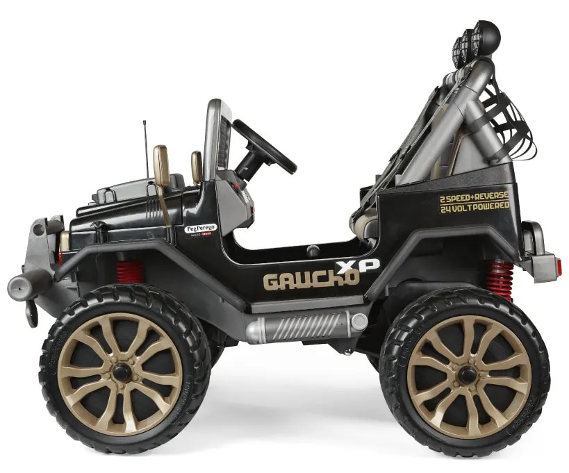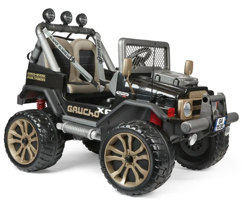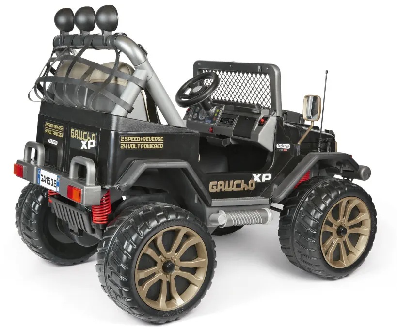 Det elektriska terrängfordonet med ljus och ljud, med XP-prestanda och -kraft. Gaucho XP terrängfordon för barn är verkligen fantastiskt! Ljus, ljud, multifunktionell radio och en tuta är några av de funktioner du kommer att älska, men det är bara början. Gaucho XP kommer att imponera på dig med sin fantastiska Extreme Performance (XP). Du kan vara säker på att ditt barn kommer att få en högpresterande körupplevelse. Den är tålig och utrustad med två motorer som tillsammans har en total uteffekt på 480 W, så barn från 3 år och uppåt garanteras oändligt med skoj. Gaucho XP är en riktig juvel tillverkad i Italien och drivs med ett uppladdningsbart batteri på 24 V/8 Ah.