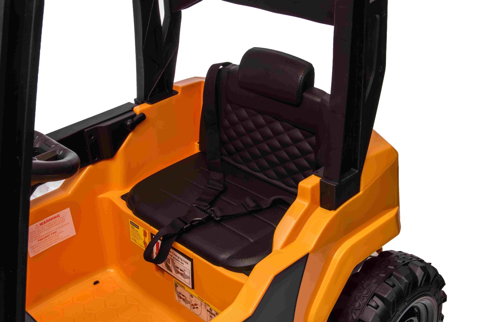 Gaffeltrucken är utrustad med ett kraftfullt 10,8 V 7,5 AH uppladdningsbart litiumbatteri för långvarig körglädje, och de uppgraderade 2 x 45 W 12 V-motorerna garanterar stabil och tillförlitlig prestanda.