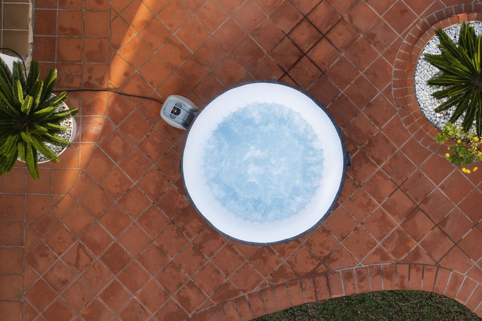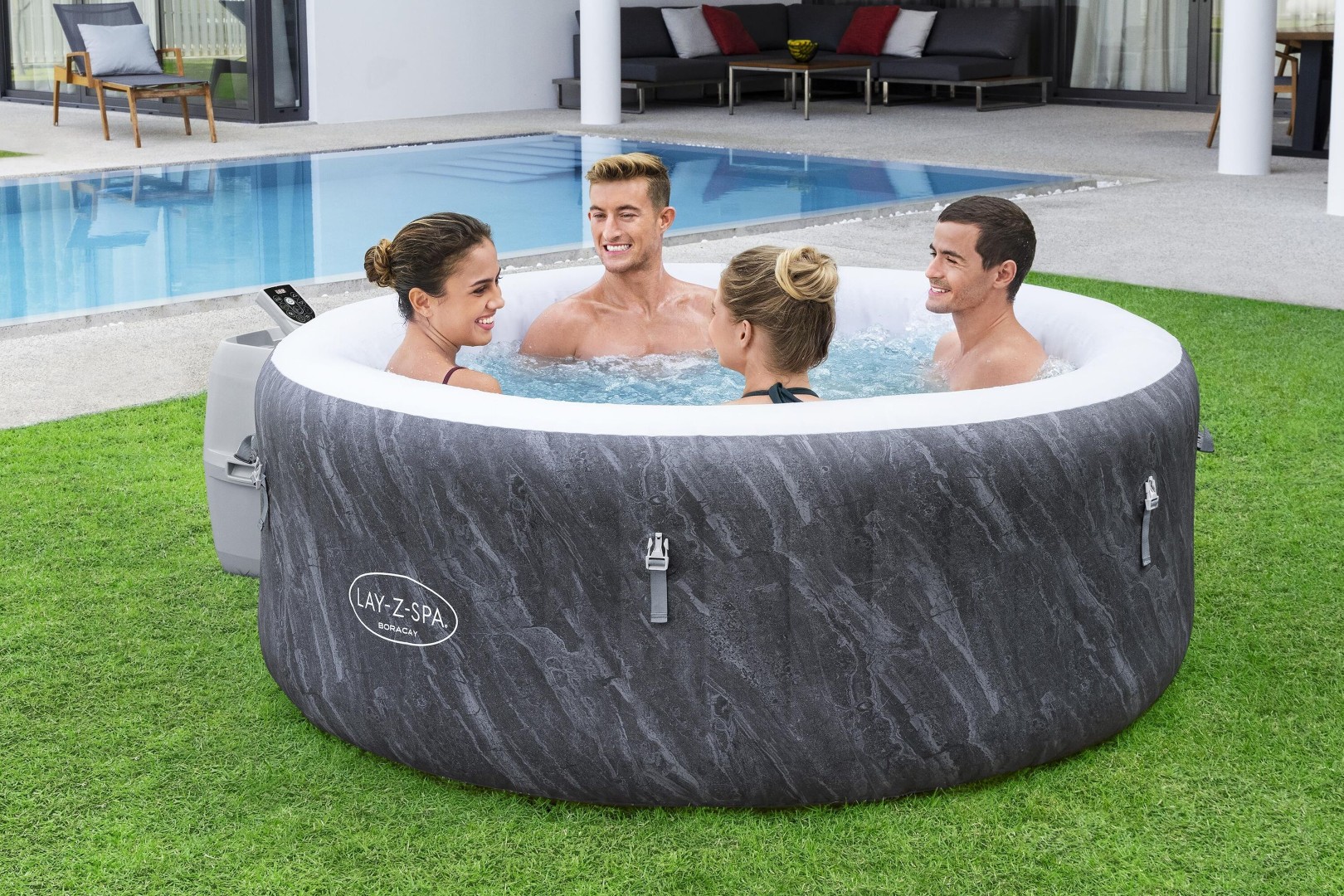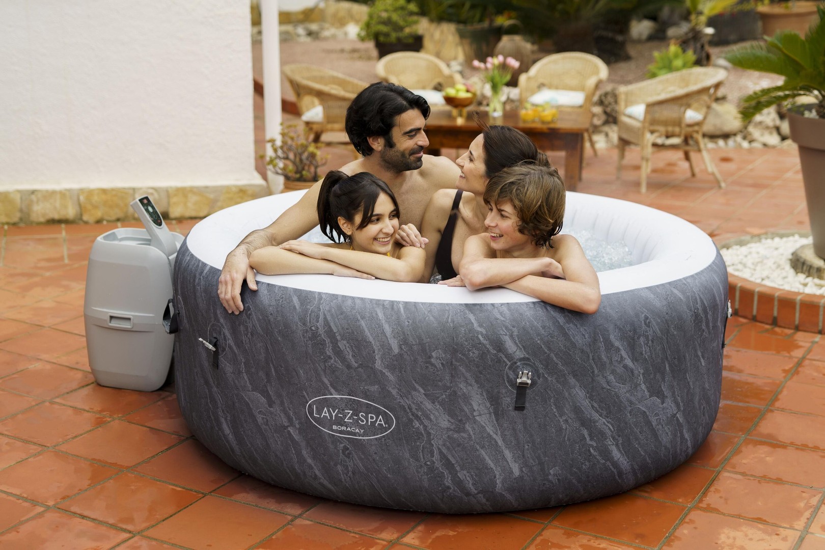 Sjunk ner i det varma, bubblande Lay-Z-Spa® Boracay Smart AirJet™ 4-spabad, skapat av världens första tillverkare av portabla spabad.