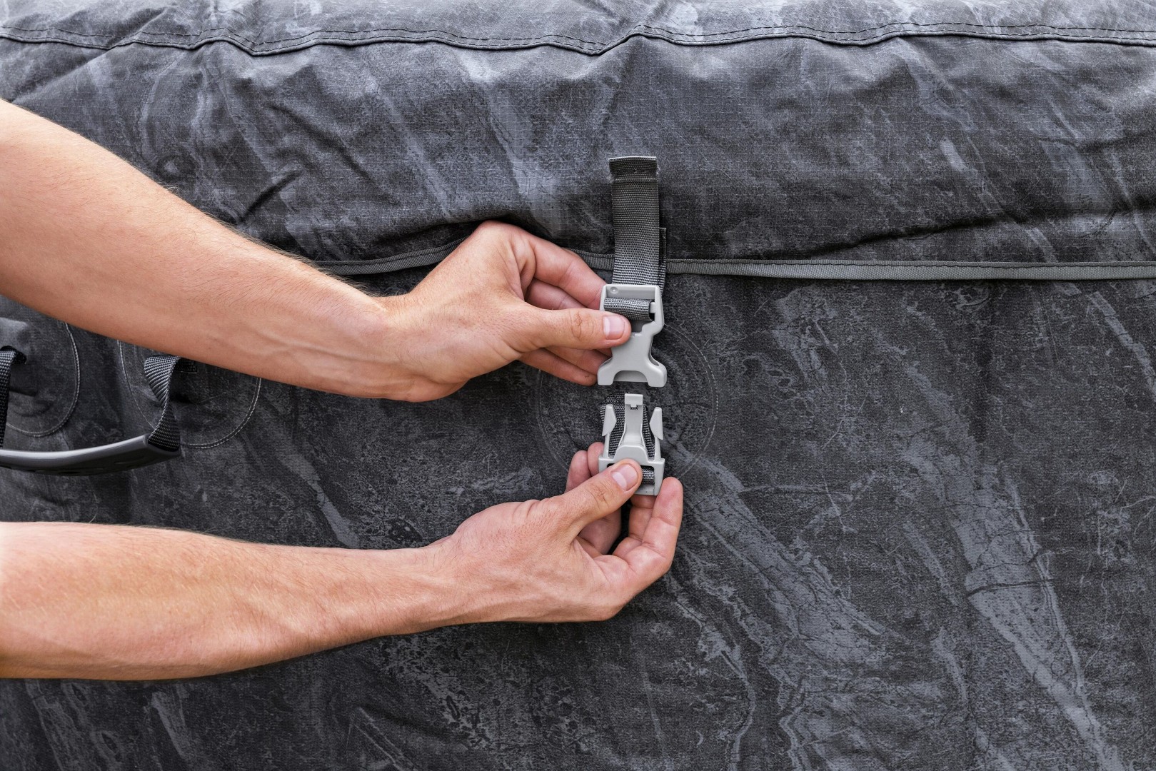 Detta spabadsset har en multifunktionspump som styr uppblåsnings-, värme- och filtreringssystemen, en ChemConnect®-dispenser som upprätthåller korrekta kemikalienivåer och ett förstärkt lock som håller värmen inne och smutsen ute.