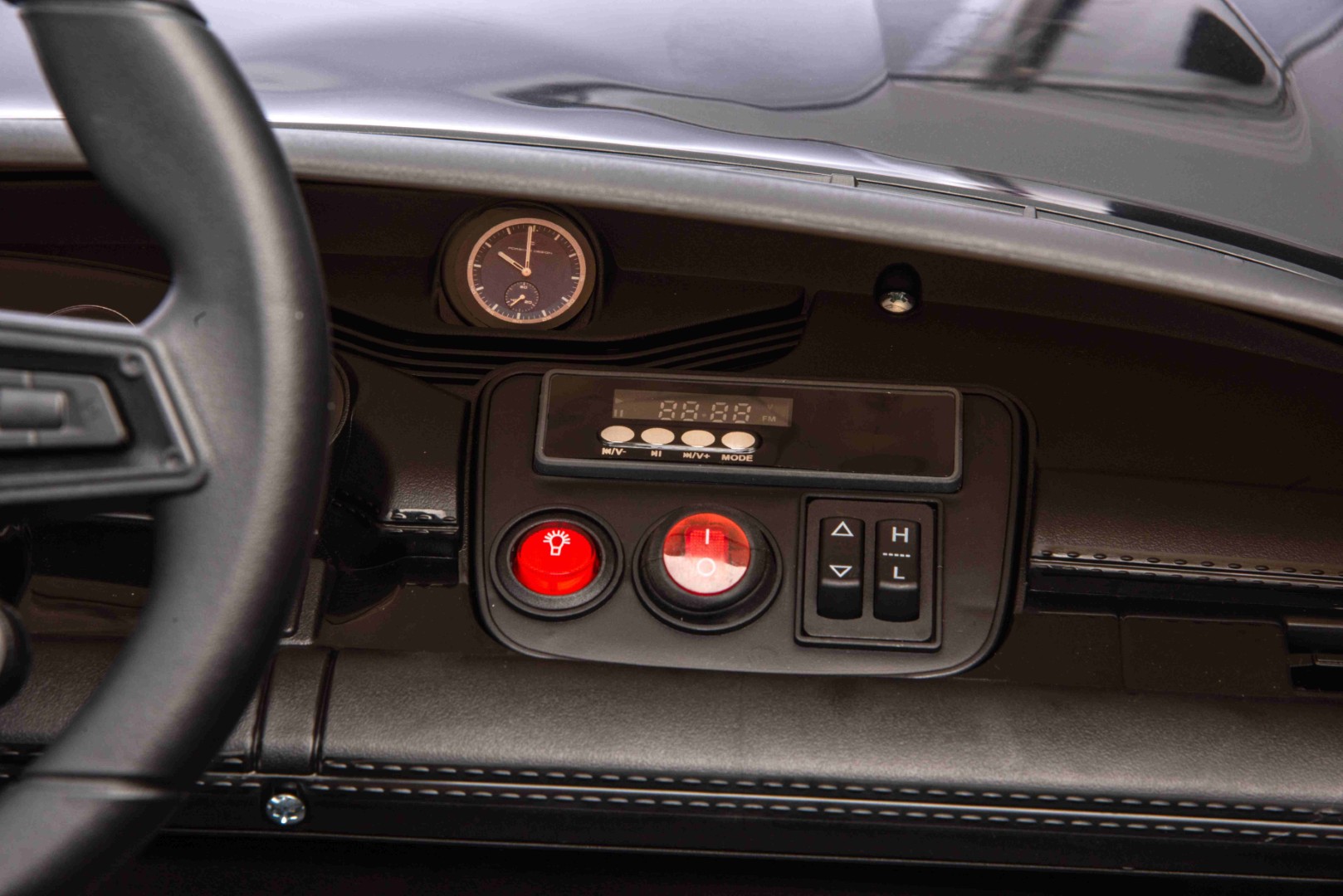 För att göra upplevelsen ännu mer autentisk är elbilen utrustad med LED-lampor som får den att se ut som en riktig Porsche - även i mörkret. Detaljerna på instrumentpanelen och ratten med Porsche-logotyp fulländar den exklusiva looken.