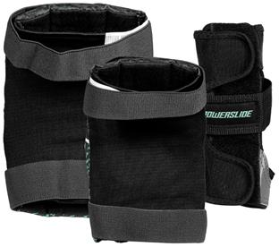Powerslide Standard Women är det perfekta köpet när säkerhet är din första prioritet. Skyddsuppsättningen är gjord för både nybörjare och avancerade åkare. Det har en snyggt designad stor, platt mössa och stötdämpande material av hög kvalitet, vilket garanterar bästa möjliga skydd under dina skridskoåkningsaktiviteter. De anatomiskt förformade dynorna har ett textilfoder som är mycket bekvämt att bära. Strumpfodralet i bomull och de elastiska kardborrebanden håller skyddet på plats på ett bra sätt. Setet kompletteras med ett lättviktshandledsskydd med en bred handledssplint och en slitstark ryggsplint för maximalt handledsskydd. Standard Women skyddsutrustning levereras i en trendig svart/teal färgkombination. Detta 3-pack är ett säkert köp och ett måste för alla åkare. Powerslide Standard Women skyddsutrustning uppfyller den europeiska säkerhetsstandarden EN 14120.