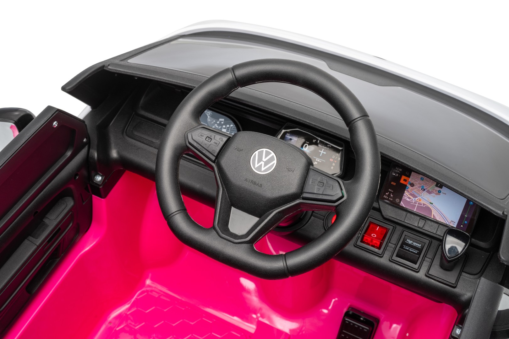 VW ID Buzz Elbil för barn 22,2V med gummihjul , lädersäte, 2.4G RC Rosa