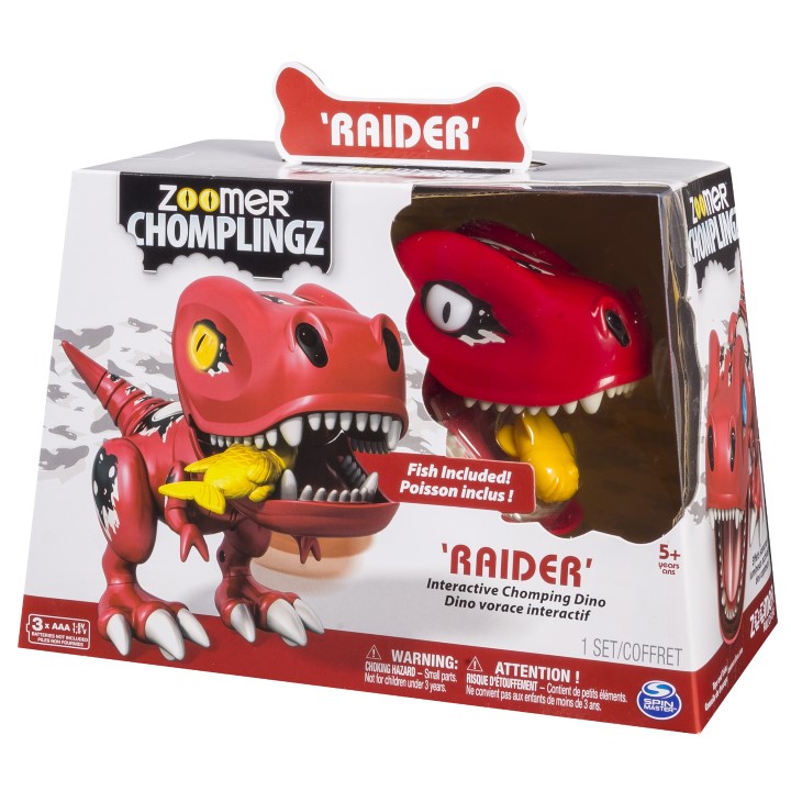 Ved brug af mund-og næsesensor kan Zoomer Chomplingz identificere, hvor du er. Er du hurtig nok til en omgang Hot Hands? Hvis ikke, kan den drillesyge dino forveksle dine fingre med en lækker godbid!